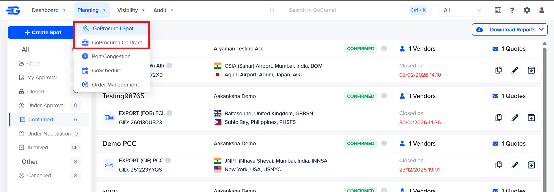 Step 1 – Click on "GoSpot" or "GoContract" as per requirement