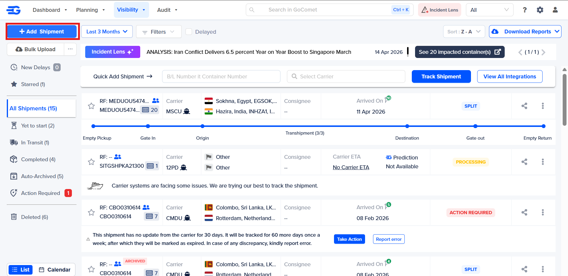 Step 2: Click on “Add Shipment” as shown below.